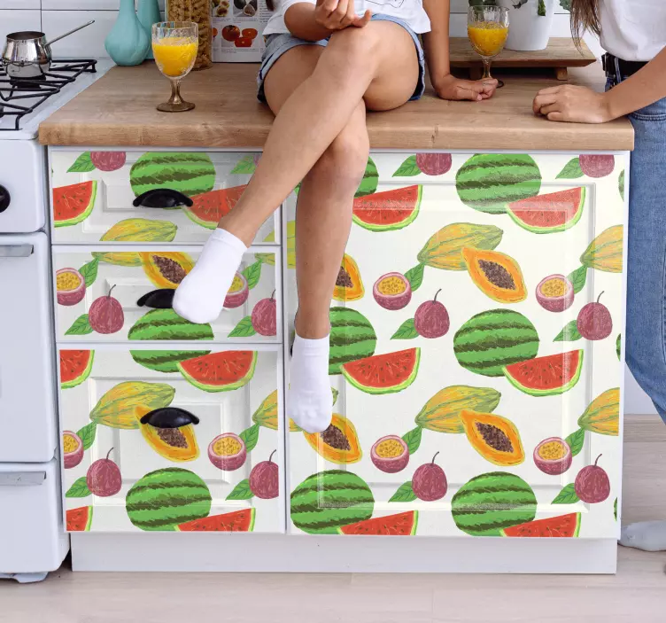 Entdecken Sie die bunten und kreativen Aufkleber Früchte für kreative motive, die Ihre Möbel und Wände in ein tropisches Paradies verwandeln! Diese einzigartigen Designs mit Wassermelonen, Papaya, Zitrone und weiteren fruchtigen Mustern bringen Farbe und Lebensfreude in jeden Raum. Ideal für kreative Köpfe, die ihren persönlichen Stil zum Ausdruck bringen möchten. Lassen Sie sich von der Vielfalt und der intensiven Farbgebung begeistern!