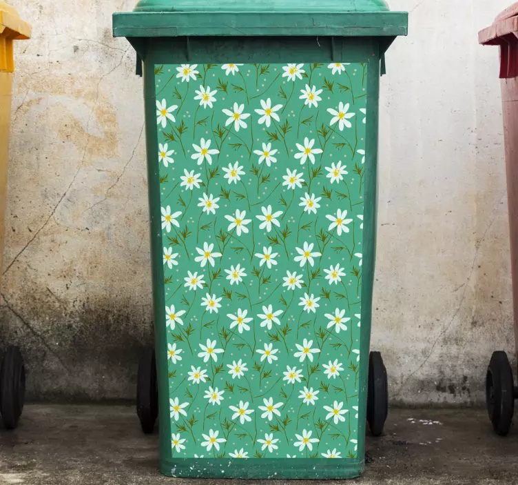 Aufkleber mülltonne mit grünem blumenmuster