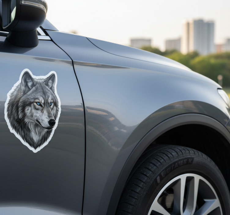 Autoaufkleber wilder blauäugiger wolf