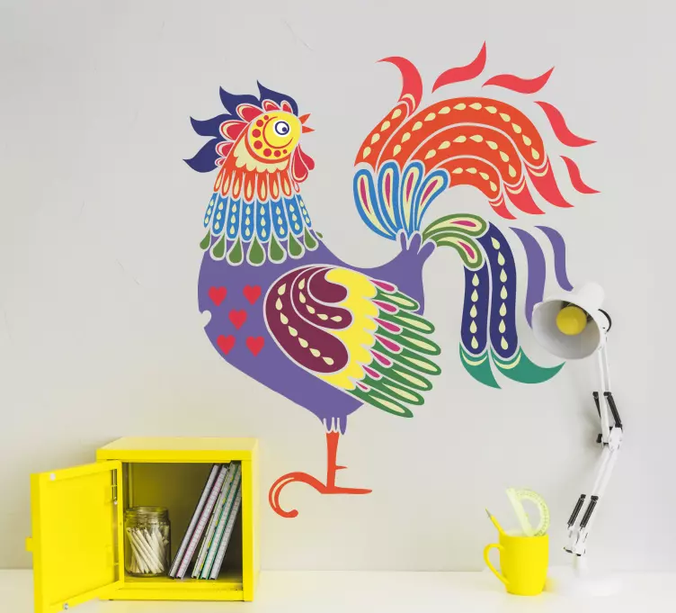 Verleihen Sie Ihrem Zuhause mit unserem Bauernhof Wandtattoo lebhaftes hahn kunstwerk eine lebendige und fröhliche Note! Dieses einzigartige Design zeigt einen bunten Hahn, der durch leuchtende Farben und kreative Muster besticht. Die kunstvolle Illustration bringt den Charakter und die Lebendigkeit eines echten Bauernhofs in Ihre Räume und sorgt für eine freundliche, einladende Atmosphäre.