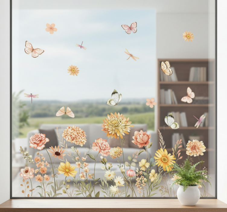 Fensteraufkleber wiesenblumen mit schmetterlingen