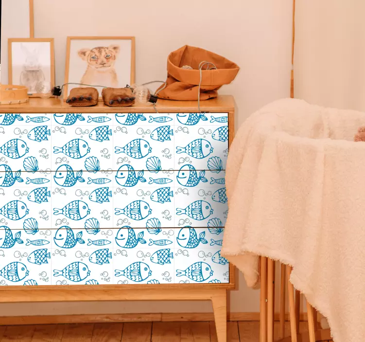 Entdecken Sie die fröhliche Welt der Folie Kühlschrank mit verspielten Fischmotiven, die perfekt für jedes Kinderzimmer gestaltet ist! Mit lebhaften Zeichnungen und Muster von Fischen und Meereslebewesen bringt dieses unterseeische Design eine unterwasserwelt in Ihr Zuhause. Die bunten Bläschen und Muscheln sorgen für ein spaßiges und wunderliches Ambiente, das Kinder und Erwachsene gleichermaßen begeistert.