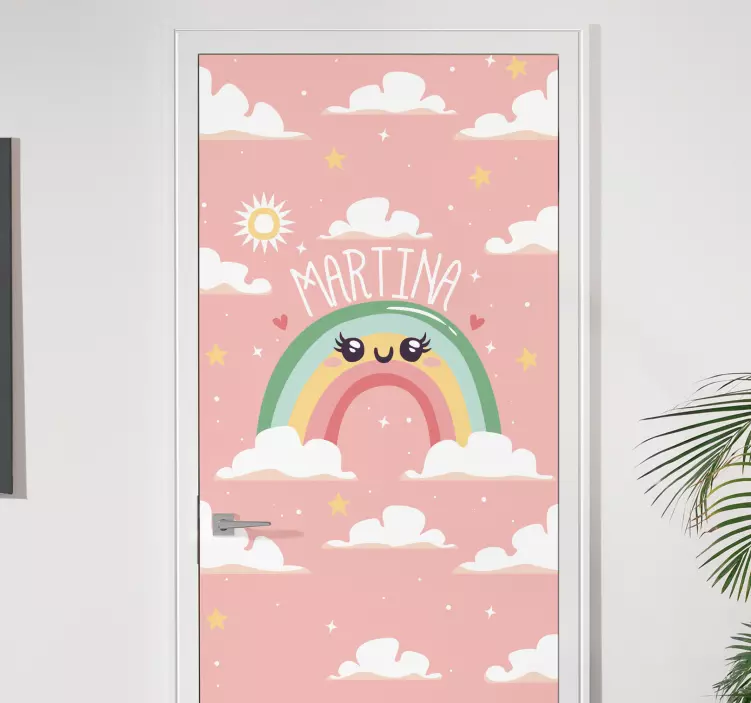 Entdecken Sie den einzigartigen Tür-Aufkleber im individuellen Regenbogen-Design! Mit liebevoll gestalteten Wolken, einem strahlenden Regenbogen und der persönlichen Note Ihres Namens bringt dieser Aufkleber nicht nur Farbe, sondern auch eine fröhliche Atmosphäre in Ihr Zuhause. Die Kombination aus Sonne, Niedlichkeit und Spaß macht jede Tür zu einem echten Hingucker!