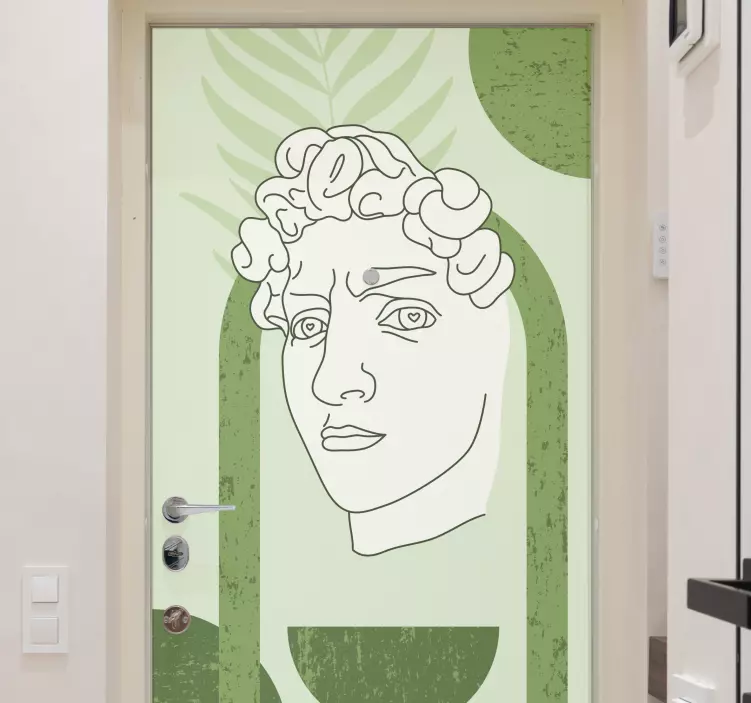 Verleihen Sie Ihrer Tür mit unserem einzigartigen Tür-Aufkleber einen Hauch von zeitgenössischer Kunst! Dieses beeindruckende Design kombiniert die berühmte David-Statue mit minimalistischen Strichzeichnungen. Die sanften Grüntöne und abstrakten Formen schaffen eine harmonische Atmosphäre in jedem Raum. Der Aufkleber ist ideal für alle, die modernes Design und Kunst schätzen und ihre Umgebung auf kreative Weise aufwerten möchten.