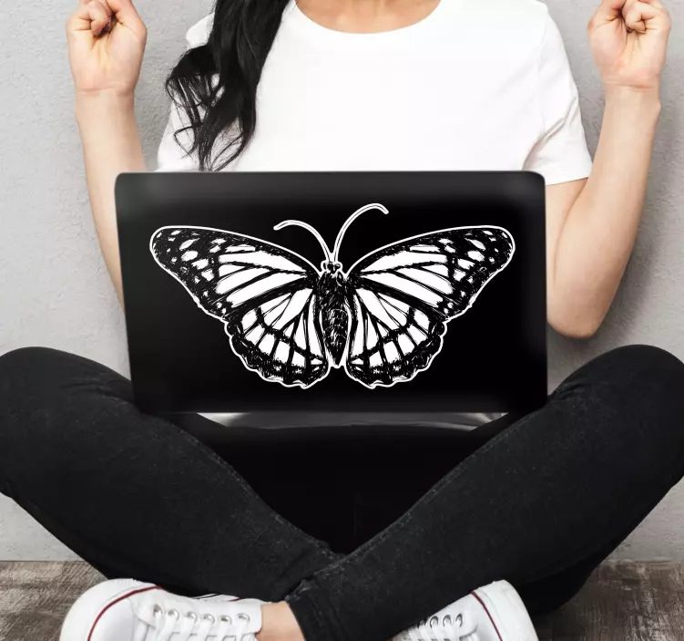 Unser Laptop Aufkleber elegante Schmetterlingskunst ist ein wahres Kunstwerk, das Ihr Gerät in ein stilvolles Accessoire verwandelt. Die grafische Gestaltung zeigt einen majestätischen Monarch Schmetterling in einem eleganten Schwarz-Weiß-Design. Diese einfarbige Kunst verkörpert die Schönheit der Natur und bringt einen künstlerischen sowie symbolischen Ausdruck in Ihre digitale Welt.