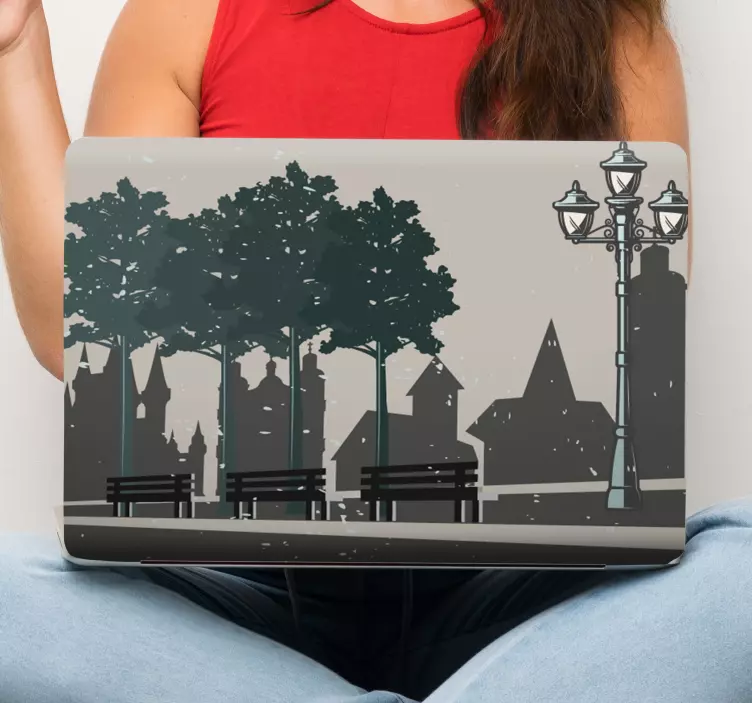 Erleben Sie die faszinierende Stadtpark Szene mit unserem einzigartigen Laptop Aufkleber. Das Design entführt Sie in die 70er Jahre, wo stilvolle Silhouetten von Bäumen, Banken und Laternenpfählen harmonisch miteinander verschmelzen. Der Laptop Aufkleber zeigt eine lebendige Straße, die das urbane Leben widerspiegelt und Ihre Geräte in ein wahres Kunstwerk verwandelt. Das grafische Design bringt eine nostalgische Stimmung in Ihr Arbeitsumfeld und lässt Sie jeden Tag ein Stück weit träumen!