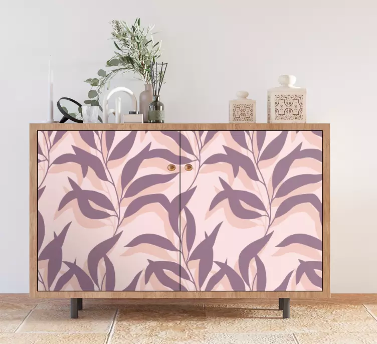Entdecken Sie die atemberaubende Möbelfolie elegantes blatt konzept, die von der Natur inspiriert wurde und mit einem grafischen Design begeistert. Die sanften Farben in Rosa und die tropischen Elemente wie Palmen und dekorative Blätter schaffen eine harmonische Atmosphäre in jedem Raum. Diese Folie bringt die Schönheit der Natur direkt in Ihr Zuhause und verwandelt alltägliche Möbel in wahre Kunstwerke!