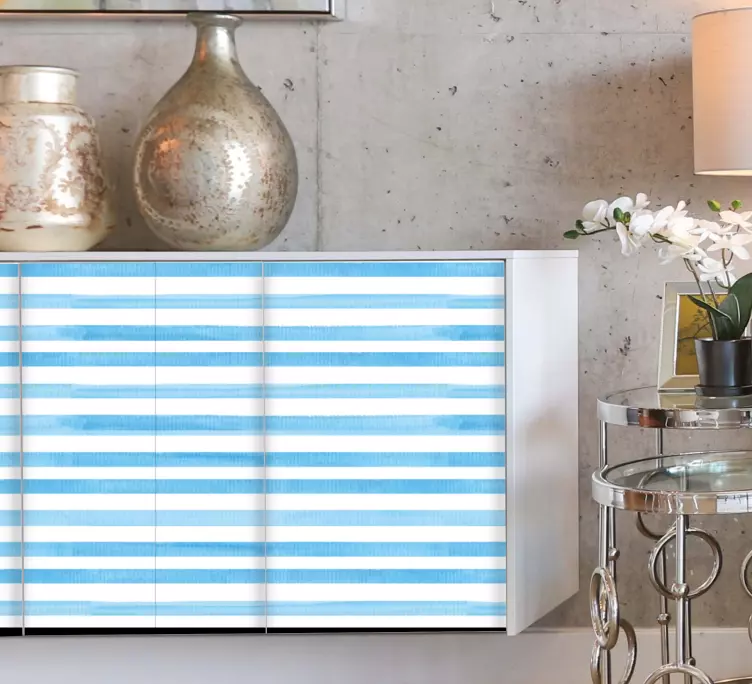 Die Möbelfolie mit blauem streifenmuster ist die perfekte Wahl, um Ihrer Einrichtung einen modernen Touch zu verleihen. Sie verwandelt gewöhnliche Möbel in beeindruckende Blickfänge und schafft somit eine einladende Atmosphäre. Dank der stilvollen Streifen harmoniert sie ideal mit verschiedenen Einrichtungsstilen und sorgt für ein frisches, lebendiges Raumgefühl, das Ihre Gäste begeistern wird!