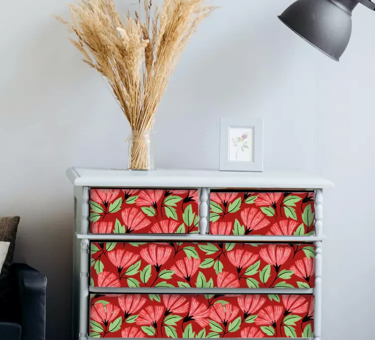 Die Möbelfolie mit floralem grafiküberzug ist die perfekte Wahl, um Ihren Wohnraum aufzufrischen und ihm eine persönliche Note zu verleihen. Mit ihrem einzigartigen floralen Design zieht sie alle Blicke auf sich und schafft eine warme und einladende Atmosphäre. Lassen Sie sich von der Schönheit der Natur inspirieren und verwandeln Sie Ihre Möbel in echte Kunstwerke, die sowohl Funktionalität als auch Ästhetik vereinen.