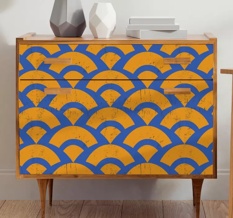 Entdecken Sie die faszinierende Welt der Möbelfolie wellenmuster Überlagerung, die mit ihrem einzigartigen Design begeistert! Das grafische Muster präsentiert sich in geschwungenen Linien und geometrischen Formen, die in einem harmonischen Zusammenspiel aus Blau und Orange strahlen. Diese minimalistische und abstrakte Gestaltung verleiht Ihren Möbeln eine frische Note und hebt die Ästhetik Ihrer Räume auf ein neues Level.