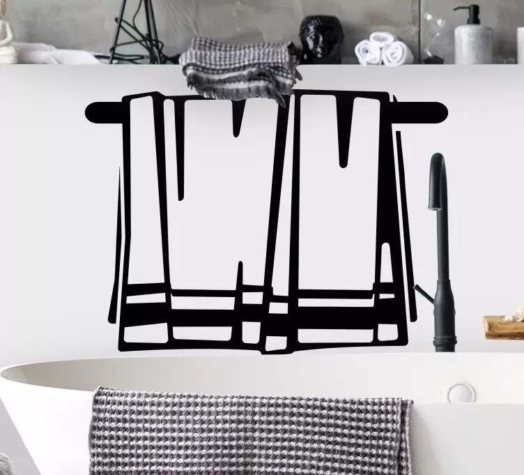 Verleihen Sie Ihrem Badezimmer mit unserem Objekt Aufkleber Handtuchhalter Kunst einen modernen und minimalistischen Touch. Das ansprechende Design zeigt eine elegante Silhouette von Handtüchern in einem sauberen und klaren Stil. Ideal für alle, die schlichtes und modernes Design schätzen, wird dieser Aufkleber zum perfekten Blickfang in Ihrem Bad.