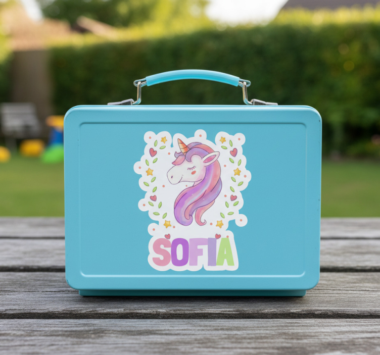 Personalisierter aufkleber einhorn mit herzen und sternen