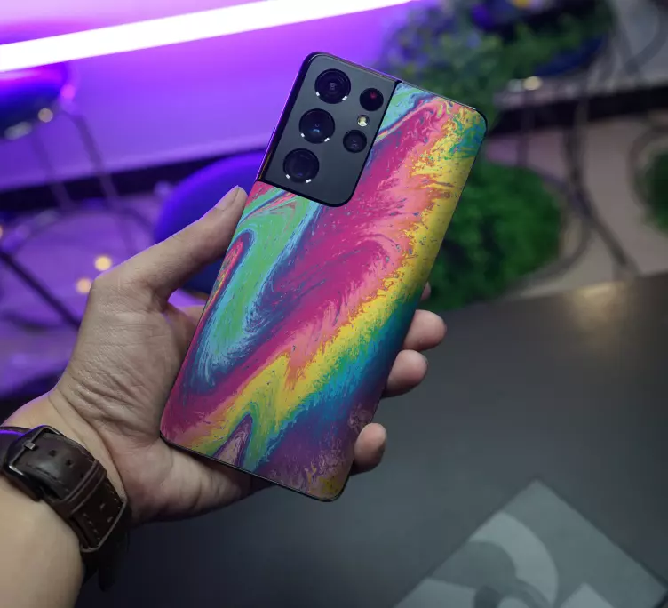 Entdecken Sie den faszinierenden Samsung Sticker bunte flüssigkeitswirbel, der mit seinem einzigartigen Grafikdesign begeistert! Der Aufkleber kombiniert lebendige Farben und ein fließendes Marmor-Design, das an einen Regenbogen erinnert und somit Ihrem Samsung-Mobiltelefon einen aufregenden Look verleiht. Mit dieser kreativen Zelle wird Ihr Handy zum echten Hingucker!