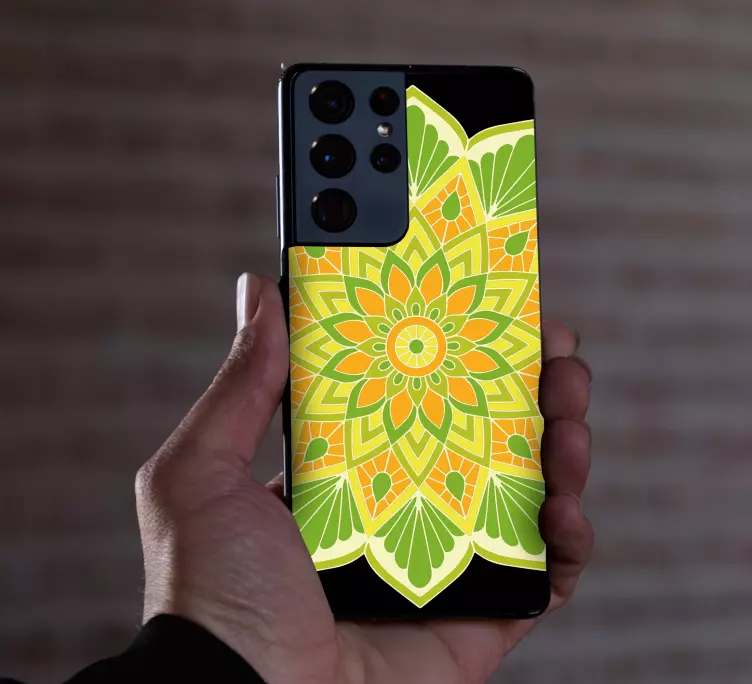 Entdecken Sie den einzigartigen Samsung-Sticker mit floralem Mandala-Element, der Ihr Smartphone in ein wahres Kunstwerk verwandelt! Das ansprechende Design kombiniert harmonisch grüne, gelbe und orange Töne, die das natürliche Muster eines Mandalas widerspiegeln. Mit diesem Aufkleber bringen Sie ein Stück Natur in Ihren Alltag und verleihen Ihrem Gerät eine persönliche Note!