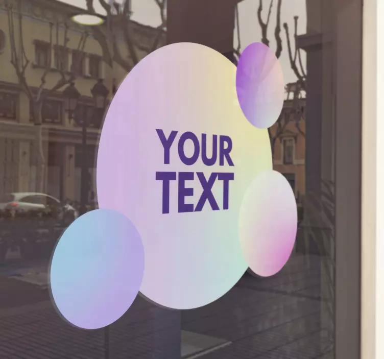 Verleihen Sie Ihrem Schaufenster mit unserer Schaufenster folie mit anpassbaren textkreisen eine lebendige und moderne Note! Das Design dieser Folie ist ein Fest für die Augen, mit einem faszinierenden Gradient und einer flüssigen abstrakten Gestaltung, die geometrische Kreise in einem bunten Arrangement präsentiert. Es ist die perfekte Wahl für alle, die einen kreativen Ausdruck suchen und gleichzeitig die Möglichkeit haben möchten, benutzerdefinierten Text einzufügen. Diese Folie wird Ihr Schaufenster in ein Kunstwerk verwandeln und Besucher anziehen!