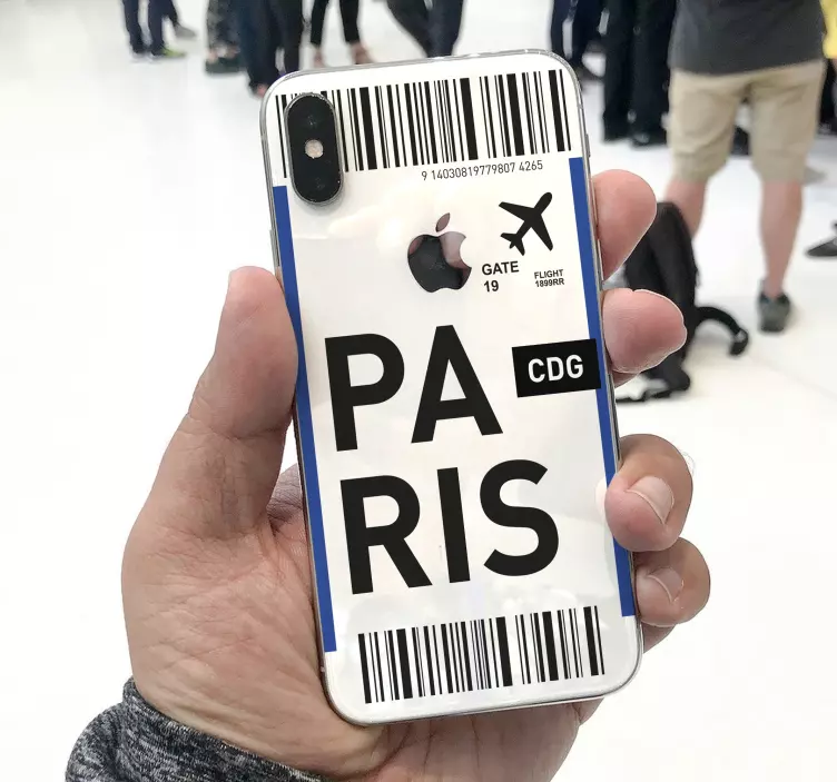 Entdecken Sie unseren einzigartigen Sticker iPhone Flugticket Paris, der Ihre Leidenschaft für das Reisen auf kreative Weise zum Ausdruck bringt! Mit einem beeindruckenden Design, das ein Flugzeug, eine Fahrkarte und charakteristische Elemente von Paris vereint, verwandelt dieser Aufkleber Ihr iPhone in ein stilvolles Accessoire. Die lebendigen Farben und der detailreiche Barcode lassen das Gefühl von Abenteuer und Fernweh aufkommen, während Sie Ihr Telefon überallhin mitnehmen. Egal, ob Sie am Flughafen sind oder einfach nur in der Stadt unterwegs, dieser Aufkleber wird garantiert zum Gesprächsthema!