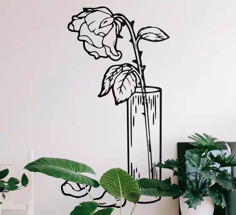 Das Wandtattoo Blumen anmutige Rosenkomposition vereint die Schönheit von Glas und Zeichnung in einem minimalistisch gestalteten Kunstwerk. Die getrockneten Blumen und Rosen in einer stilvollen Vase verleihen jedem Raum eine harmonische und elegante Atmosphäre. Dieses Design bringt die Anmut der Natur direkt in Ihr Zuhause und sorgt für einen frischen, einladenden Look.
