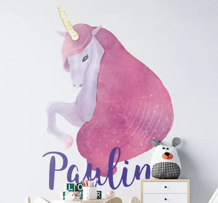 Verleihen Sie dem Kinderzimmer mit unserem Wandtattoo Kinderzimmer Einhorn Design Kunstwerk eine zauberhafte Atmosphäre! Dieses einzigartige Design zeigt ein wunderschönes Einhorn, das in lebendigen Farben und mit einem künstlerischen Aquarell-Stil spielt. Es ist personalisiert und kann mit dem Namen Ihres Kindes angepasst werden, was es zu einem perfekten, spielersichen Element für jedes Kinderzimmer macht. Jedes Detail ist darauf ausgelegt, die Fantasie zu beflügeln und eine fröhliche Umgebung zu schaffen!