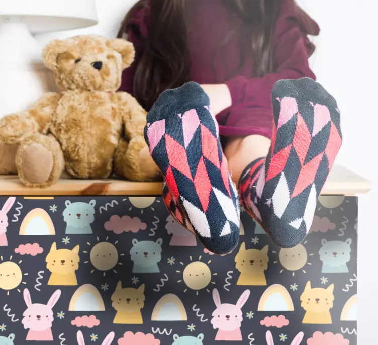 Verleihen Sie dem Kinderzimmer mit unserem Wandtattoo kinderzimmer niedliche kreaturen designs einen Hauch von Magie! Dieses farbenfrohe Design ist eine zauberhafte Mischung aus Tieren, Regenbögen und Mustern, die spielerische Elemente und eine fröhliche Atmosphäre schafft. Die Karikaturen und Zeichnungen sind so gestaltet, dass sie die Fantasie der Kinder anregen und das Zimmer in ein wunderliches Abenteuerland verwandeln. Jedes Detail in diesem Design bringt Spaß und Freude in den Alltag.