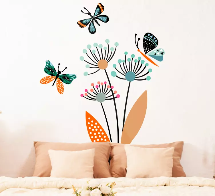Wandtattoo natur mit bunten floral-schmetterlingen
