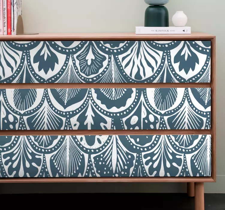 Verleihen Sie Ihrem Zuhause mit unserem Wandtattoo Ornament im floralen Druckstil einen frischen und eleganten Look. Das kunstvolle Design kombiniert eindrucksvolle Fischschuppen-Muster in Blau mit floralen Elementen, die eine harmonische und dekorative Textur schaffen. Dieses Wandtattoo ist nicht nur ein visueller Genuss, sondern auch eine stilvolle Ergänzung für Ihre Möbel.