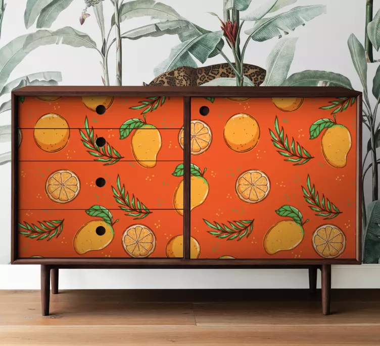 Das Wandtattoo Ornament mit Zitrusmuster präsentiert sich in einem lebhaften Design, das fruchtige Elemente wie Orangen und Zitronen mit zarten Blättern vereint. Die bunten und hellen Farben bringen eine fröhliche Atmosphäre in jeden Raum und verleihen Ihrer Einrichtung eine erfrischende Note. Dieses wunderschöne Wandtattoo ist nicht nur ein Blickfang, sondern auch eine kreative Möglichkeit, Ihre Wände zu dekorieren und Ihre Möbel stilvoll zu ergänzen.