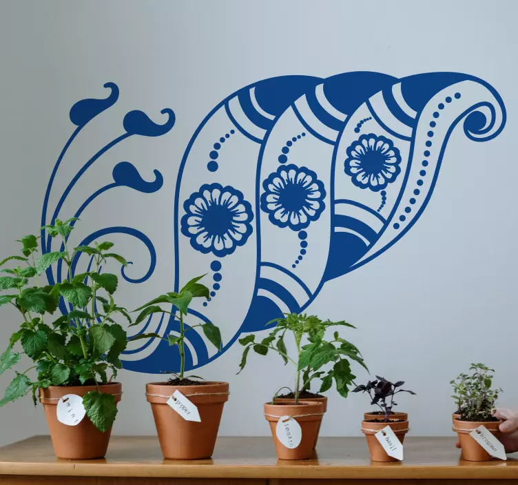 Unser Wandtattoo Pflanzen botanische Blätter Inspiration präsentiert ein atemberaubendes Design, das mit seiner dekorativen Hülse und den filigranen Blumen in marine Blau sowie der vielfältigen Flora die Natur in Ihr Zuhause bringt. Es wirbelt förmlich in einem harmonischen Muster durch den Raum und sorgt für ein lebendiges Ambiente!