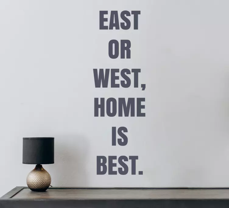 Das Wandtattoo Sprüche Zufluchtsort des Komforts ist ein inspirierendes Design, das die Worte Text, Ost, Westen, Heimat, Beste, zitieren, Inspiration und Komfort harmonisch miteinander verbindet. Es verwandelt jeden Raum in einen Rückzugsort, der sowohl Gemütlichkeit als auch Stil ausstrahlt. Lassen Sie sich von den kraftvollen Worten inspirieren und schaffen Sie eine Atmosphäre, die zum Verweilen einlädt!