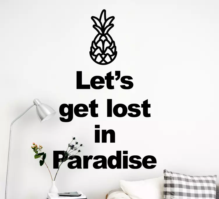 Referenz: A48933Diese Komposition zeigt eine fette Textaussage, begleitet von einer Ananas-Illustration. Das Design vermittelt ein Gefühl von Abenteuer und Entspannung und ermutigt den Betrachter, die Idee zu umarmen, ins Paradies zu entfliehen. Perfekt geeignet, um jeden Wohnraum mit einem tropischen Flair zu bereichern.
