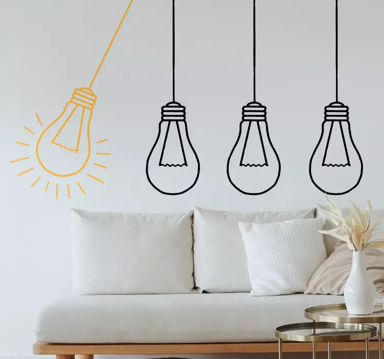 Das Wandtattoo Welt mit hängenden Glühbirnen besticht durch sein nordisches, minimalistisches Design, das anmutige Glühbirnen in einer harmonischen Anordnung zeigt. Diese stilvolle Zeichnung fügt sich perfekt in jeden Wohnstil ein und verleiht Ihrem Raum eine besondere Atmosphäre. Die liebevoll gestaltete Illustration ist nicht nur ein Blickfang, sondern auch ein Ausdruck von Eleganz und Kreativität, die Ihr Zuhause zum Strahlen bringt.