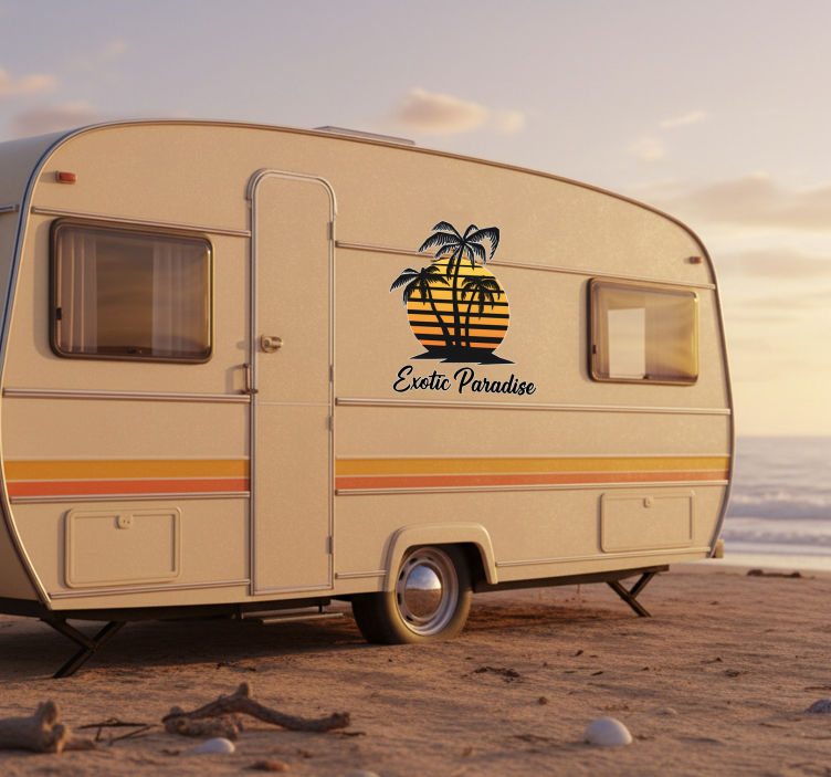 Wohnmobil aufkleber exotischer paradies sonnenuntergang