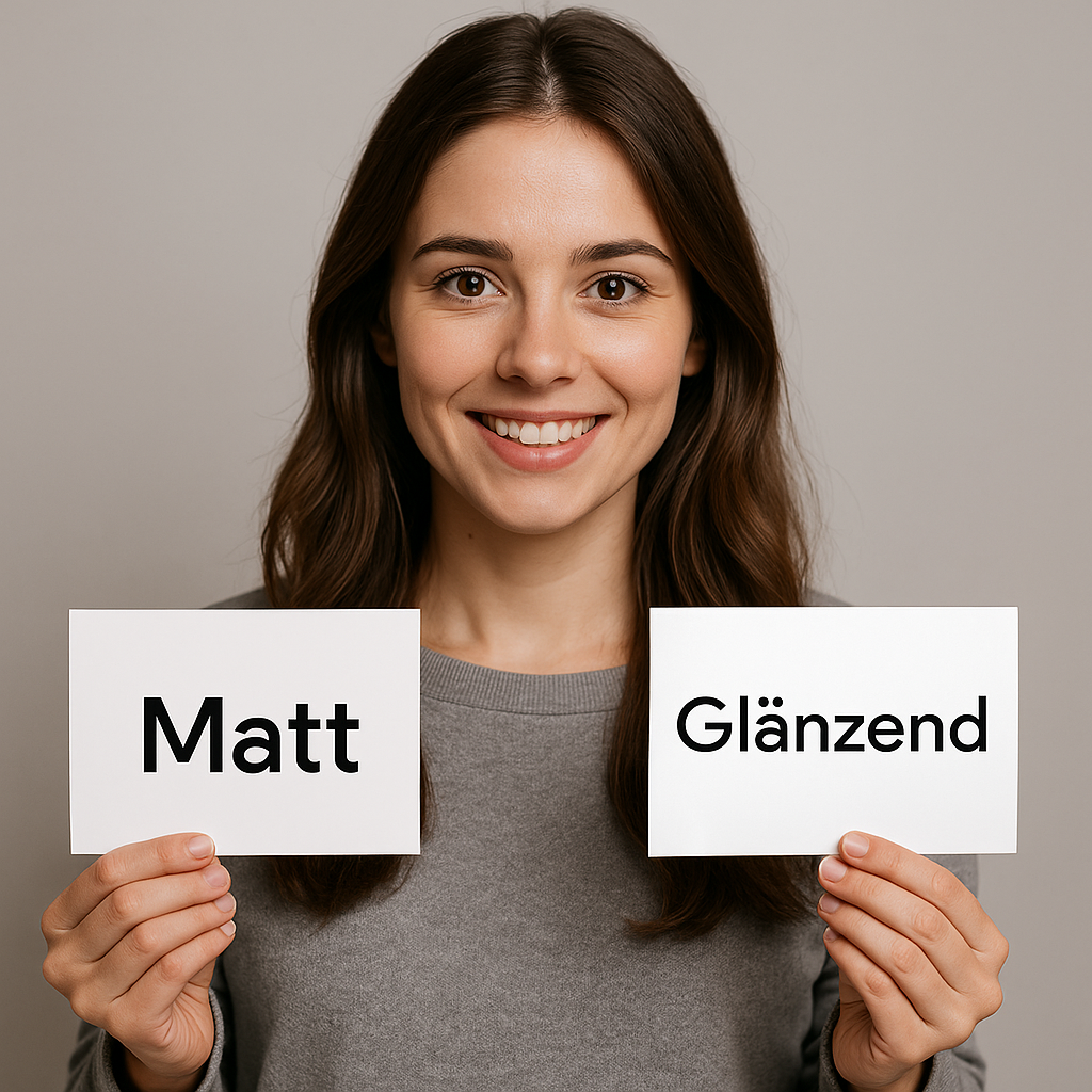 - Außenbereich & Werbung: Glänzend – damit es ins Auge sticht.