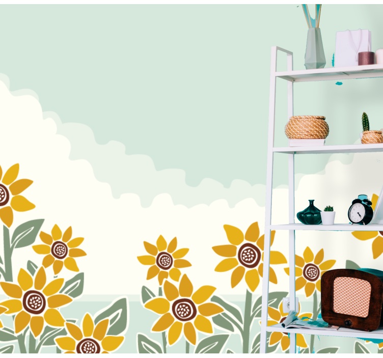 Die Fototapete Blumen Sonnenblumen Garten Szene entführt Sie in eine farbenfrohe und lebendige Welt der Natur. Mit einer beeindruckenden Illustration von Sonnenblumen, die in einem natürlichen und grünen Landschaftszenario blühen, bringt dieses Design frischen Wind in jedes Zuhause. Diese atemberaubende Tapete schafft eine harmonische Atmosphäre und verleiht Ihren Räumen einen Hauch von Lebensfreude!