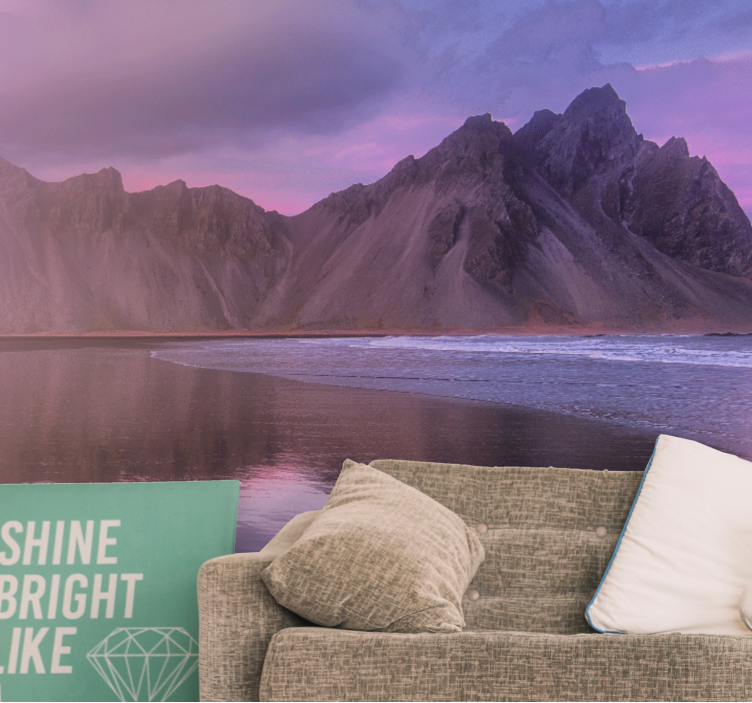 Erleben Sie die beeindruckende Fototapete Landschaft majestätische bergansicht, die eine harmonische Verbindung zwischen majestätischen Bergen, feinem Sand und atemberaubenden Landschaften schafft. Diese exklusive Fotografie fängt die Schönheit der Berge und des Ozeans ein, und lädt dazu ein, den Blick auf die Natur zu genießen und in eine friedliche Atmosphäre einzutauchen.