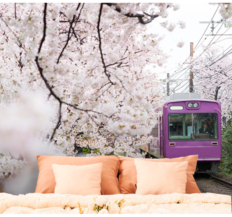 Die Fototapete Städte Kirschblütenzug ist die perfekte Wahl für alle, die ihrem Wohnraum einen Hauch von Eleganz und Frische verleihen möchten. Durch das bezaubernde Design mit Kirschblüten und dem harmonischen Zug im Hintergrund wird jeder Raum zum Blickfang. Es ist eine einfache Möglichkeit, Ihre Wände zu verschönern und eine fröhliche, einladende Atmosphäre zu schaffen!