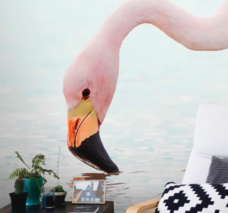 Entdecken Sie unsere Fototapete Tiere Flamingo Wasserreflexion, die mit einem atemberaubenden Design aufwartet. Diese Fototapete zeigt einen majestätischen Flamingo, dessen Kopf elegant über die Wasseroberfläche eines ruhigen Sees reflektiert wird. Die Harmonie von Natur und Fotografie wird in diesem einzigartigen Kunstwerk perfekt eingefangen und bringt einen Hauch von exotischer Schönheit in Ihr Zuhause.