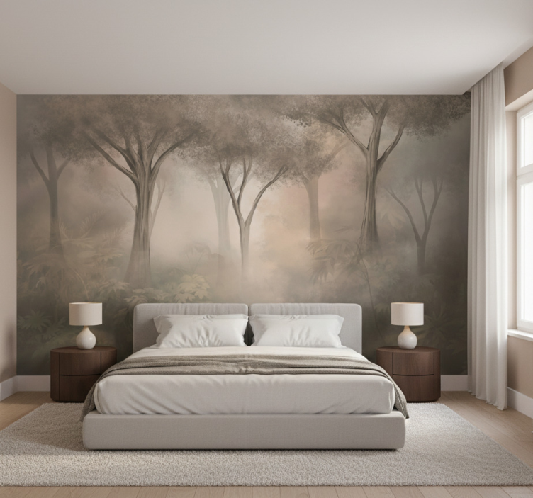 Tapete wald nebel sepia wald