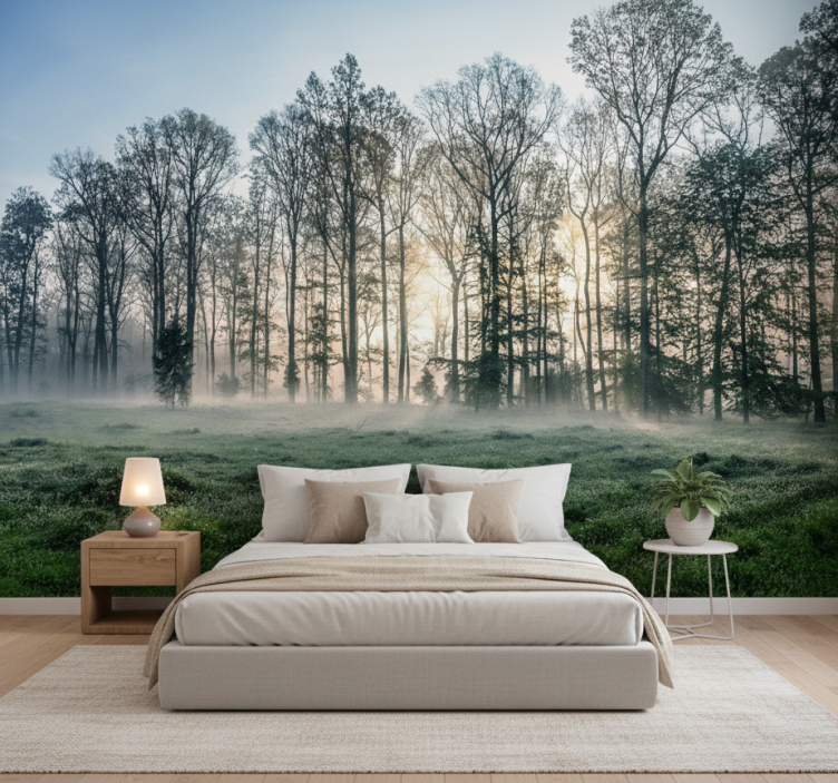 Referenz: F11928Die Tapete Wald nebeliger morgenwiese verleiht Ihrem Raum eine traumhafte Atmosphäre, die an einen mystischen Morgen im Wald erinnert. Mit sanften, matten Farben und einem harmonischen Design, das die Schönheit der Natur einfängt, wird diese Vliestapete zu einem echten Blickfang. Die sanften Übergänge von hellen und dunklen Tönen schaffen eine beruhigende und gleichzeitig inspirierende Umgebung, die zum Entspannen und Verweilen einlädt. Egal, ob im Wohnzimmer, Schlafzimmer oder Arbeitszimmer - jede Wand wird mit dieser Tapete zum Leben erweckt!