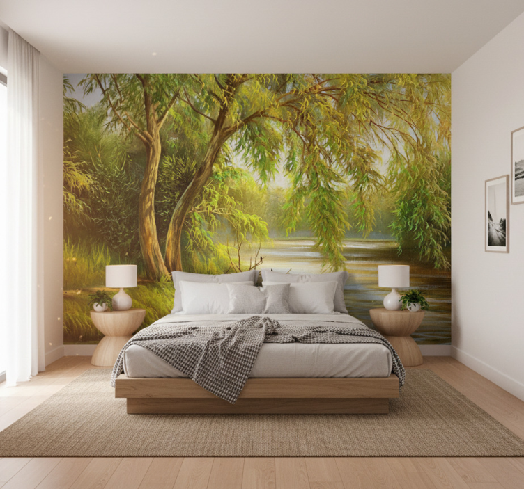 Die Tapete Wald sanfter Fluss mit Weide ist nicht nur ein Blickfang, sondern auch eine Quelle der Inspiration. Sie bringt die Ruhe und Schönheit der Natur in Ihre Räume und schafft eine einladende Atmosphäre. Diese Tapete ist perfekt, um eine entspannende Umgebung zu gestalten, in der Sie sich wohlfühlen und entspannen können. Lassen Sie sich von der Harmonie der Natur inspirieren und verwandeln Sie Ihr Zuhause in eine Oase der Ruhe!