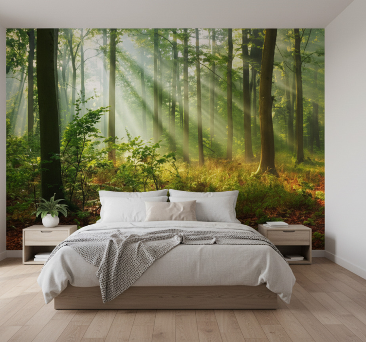 Die Tapete Wald Sonnenbeschienener Morgenhain ist ideal für die Dekoration von Wohnräumen, da sie eine beruhigende und einladende Umgebung schafft. Mit ihrer einzigartigen Darstellung eines sonnendurchfluteten Morgens im Wald bringt sie Leben in jeden Raum. Diese Tapete verwandelt Ihre Wände in ein Kunstwerk und sorgt für eine harmonische Verbindung zwischen Innenraum und Natur. Lassen Sie sich von der Ruhe und Schönheit des Waldes inspirieren und gestalten Sie Ihr Zuhause neu!
