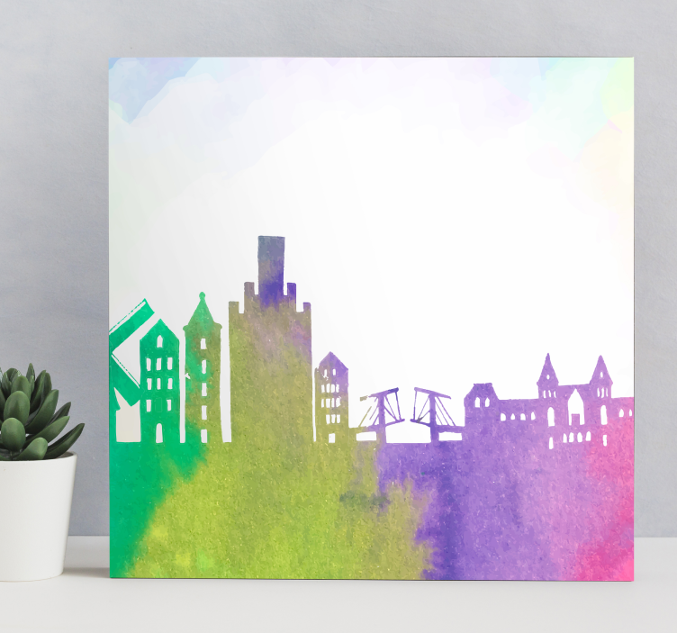 Entdecken Sie unser einzigartiges Leinwandbild stadt-silhouette skyline, das die Schönheit der Niederlande in einem farbenfrohen Aquarell-Design einfängt. Die künstlerische Handmalerei zeigt beeindruckende Wahrzeichen und Gebäude vor einem malerischen Horizont, der das Stadtleben lebendig werden lässt. Jedes Detail dieses Gemäldes ist liebevoll gestaltet, um die Sehenswürdigkeiten der Stadt in voller Pracht darzustellen und Ihrem Wohnraum einen Hauch von Eleganz zu verleihen!