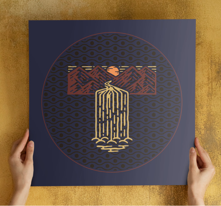 Entdecken Sie die atemberaubende Welt unserer Wandbilder Landschaft ruhige wasserfall landschaft, die mit einem faszinierenden Design begeistert. Dieses Kunstwerk vereint die Schönheit eines Wasserfalls, majestätische Berge und die strahlende Sonne in einem harmonischen Zusammenspiel von violetten und lila Farbtönen. Die geometrischen und minimalistischen Muster verleihen der Zeichnung eine afrikanische Note, während die runden und abstrakten Formen die Natur einfängt. Ein Sonnenuntergang hinter den Bergen macht dieses Bild zu einem wahren Blickfang!