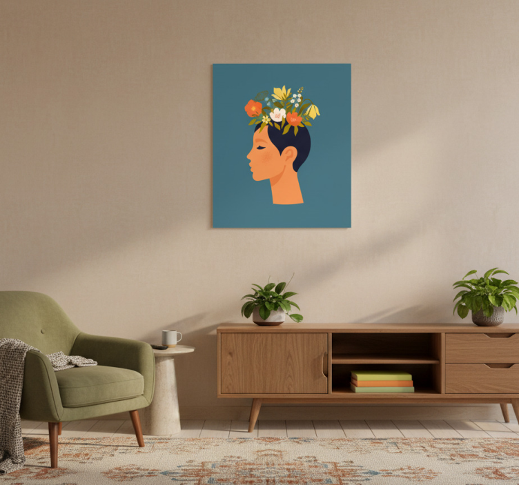 Referenz: G968Entdecken Sie das atemberaubende Blumenposter abstrakte frau auf blauem hintergrund, das mit seinem faszinierenden Design und den lebendigen Farben jeden Raum zum Strahlen bringt! Dieses Poster zeigt eine stilvolle Darstellung einer Frau umgeben von kunstvollen Blumen auf einem beruhigenden blauen Hintergrund. Die harmonische Kombination aus 180 g/m² Grammatur und einem halbmattierten Finish sorgt dafür, dass die Farben in hoher Intensität erstrahlen und gleichzeitig Reflexionen vermieden werden.
