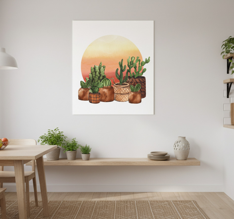 Das Küchenposter küchenposter kaktus mit sonnenuntergang im kreis ist die perfekte Wahl für alle, die ihrer Küche eine lebendige und einladende Atmosphäre verleihen möchten. Die harmonischen Farben und das inspirierende Motiv schaffen eine entspannte Stimmung, die beim Kochen und Beisammensein mit Freunden und Familie für gute Laune sorgt. Verleihen Sie Ihrer Küche mit diesem Kunstwerk einen Hauch von Natur und Freude!