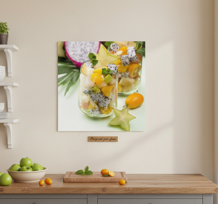 Referenz: G598Entdecken Sie unser einzigartiges Küchenposter mango und grüne gläser, das durch sein frisches Design besticht. Die Kombination aus leuchtenden Mango-Tönen und eleganten grünen Gläsern schafft eine harmonische Atmosphäre, die sowohl modern als auch einladend wirkt. Dieses Poster ist nicht nur ein Blickfang, sondern bringt auch einen Hauch von Exotik in Ihre Küche. Mit einer Grammatur von 180 g/m² bietet es eine ideale Basis für Poster und sorgt durch das halbmattierte Finish für hohe Farbintensität ohne störende Reflexionen.