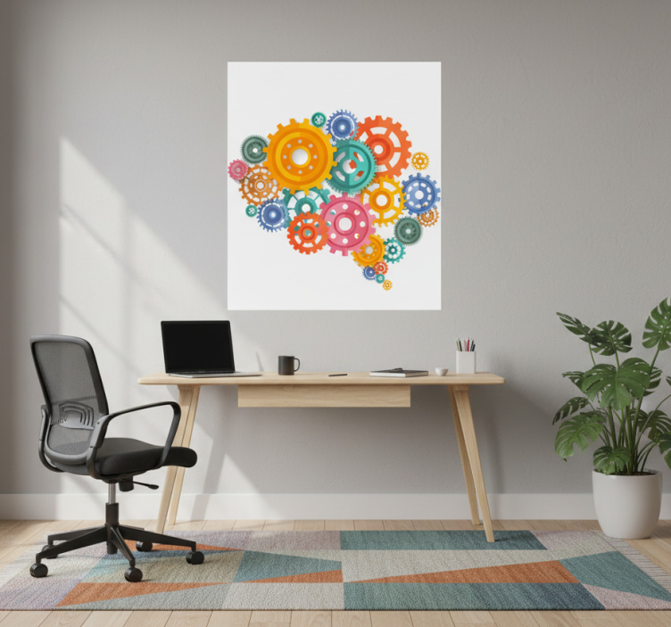 Referenz: G683Entdecken Sie unser Poster Büro mit bunten Gehirn-Zahnrädern, ein wahres Kunstwerk, das Ihre Wände zum Leben erweckt! Dieses Design kombiniert lebhafte Farben und kreative Zahnräder, die symbolisch für kreative Denkprozesse stehen. Die hochwertige Druckqualität auf 180 g/m² bietet eine hohe Farbintensität und ein halbmattes Finish, das Reflexionen vermeidet und somit die Details perfekt zur Geltung bringt.