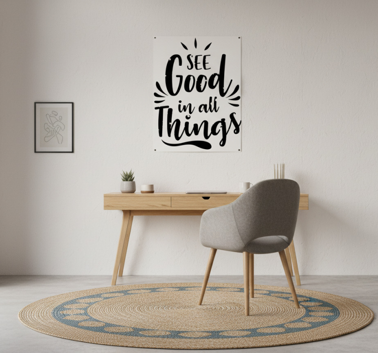 Referenz: G713Entdecken Sie unser einzigartiges Poster Büro sieh das gute in allem, das mit einem inspirierenden Design begeistert. Die Kombination aus einer 180 g/m² Grammatur und einem halbmatten Finish sorgt dafür, dass das Poster nicht nur schön aussieht, sondern auch praktisch ist. Die hohe Farbintensität bringt positive Energie in jeden Raum und lässt Ihre Botschaft klar und deutlich erstrahlen.