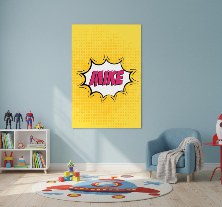 Referenz: G901Entdecken Sie das Poster Kinderzimmer comicbuchname, das mit seiner einzigartigen grafischen Gestaltung die Wände Ihrer Kinderzimmer in eine farbenfrohe und lebendige Welt verwandelt! Die hohe Farbintensität und das halbmattierte Finish sorgen dafür, dass das Poster nicht nur ins Auge fällt, sondern auch die Fantasie anregt. Mit einer Grammatur von 180 g/m² ist es ideal für die Dekoration geeignet und bringt Freude und Kreativität in jeden Raum.