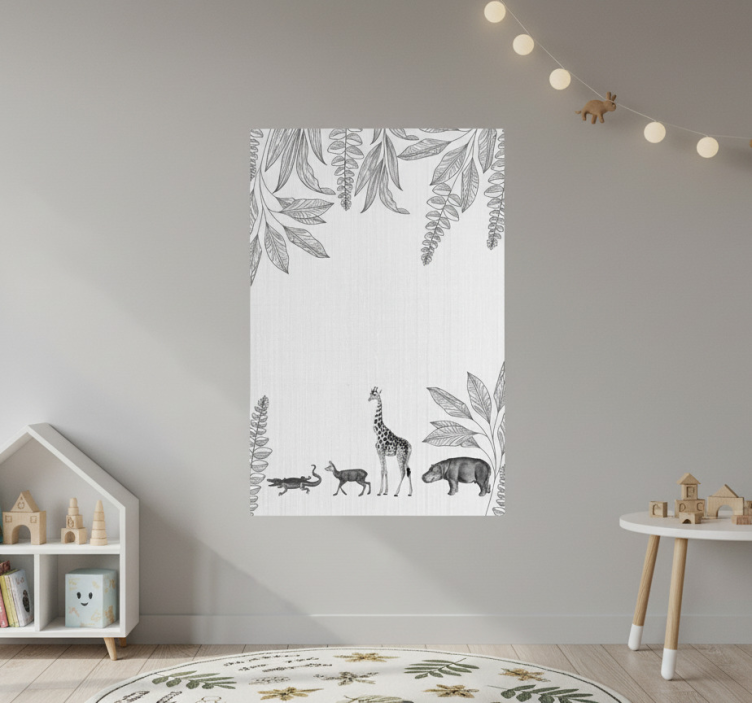 Poster kinderzimmer safari tiere und bäume rahmen