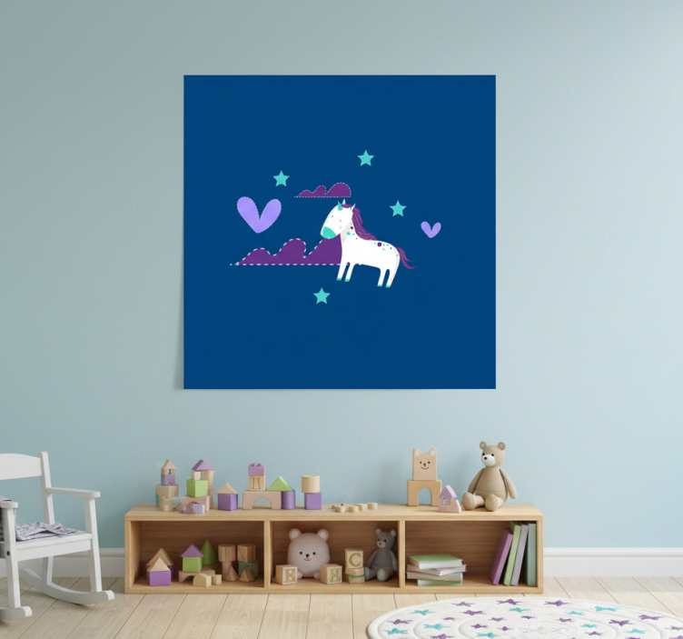 Poster kinderzimmer süße einhörner mit wolken und sternen
